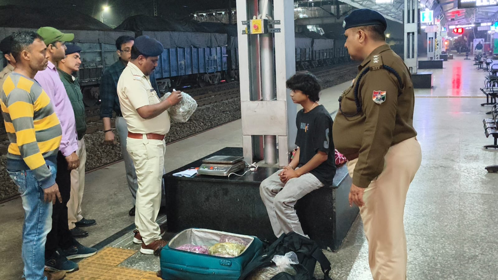 জানা যায় মঙ্গলবার গভীর রাতে 18181 এক্সপ্রেস ট্রেনটি যখন দক্ষিণ-পূর্ব রেলের পুরুলিয়ার আদ্রা ডিভিশনের জয়চন্ডী রেল স্টেশনে পৌঁছায় তখন আর পি এফের নজরে আসে এক যুবক জয়চন্ডী রেল স্টেশনে একটি ট্রলি ব্যাগ নিয়ে নামে।ট্রেন থেকে নামার পর ঐ যুবকটি স্টেশনে ব্যাগটি ফ্লাটফর্মের একপাশে রেখে উদ্দেশ্যহীন ভাবে ঘোরাফেরা করছে।আর এতেই আর পি এফ কর্মীদের সন্দেহ হতেই ঐ যুবকটিকে আটক করে জিজ্ঞাসাবাদ করতেই তার কথাবার্তায় অসংগতি লক্ষ্য করে আর পি এফ কর্মীরা।তার ব্যাগ খুলে তল্লাশি করতেই আর পি এফ কর্মীদের নজরে পড়ে ব্যাগের জামাকাপড়ের নীচে 6টি প্যাকেটে 7কেজি গাঁজা রাখা রয়েছে।এরপরই পুলিশ তাকে গ্রেফতার করে আদ্রা জি আর পিকে হস্তান্তর করলে ধৃতকে তারা রঘুনাথপুর মহকুমা আদালতে তোলে।এই বিপুল পরিমাণ মাদক ঐ যুবকটি কোথা থেকে আনছিল ও কোথায় নিয়ে যাওয়া হচ্ছিল তা খতিয়ে দেখছে আরপিএফ ।তাছাড়া এই চক্রে আরো কেউ জড়িত আছে কি না তা সমস্ত দিকে খতিয়ে দেখার কাজ শুরু করেছে সিপিডিএস আরপিএফ-এর একটি দল এমনটাই বুধবার রাত্রি 7টা নাগাদ জানা যায়।